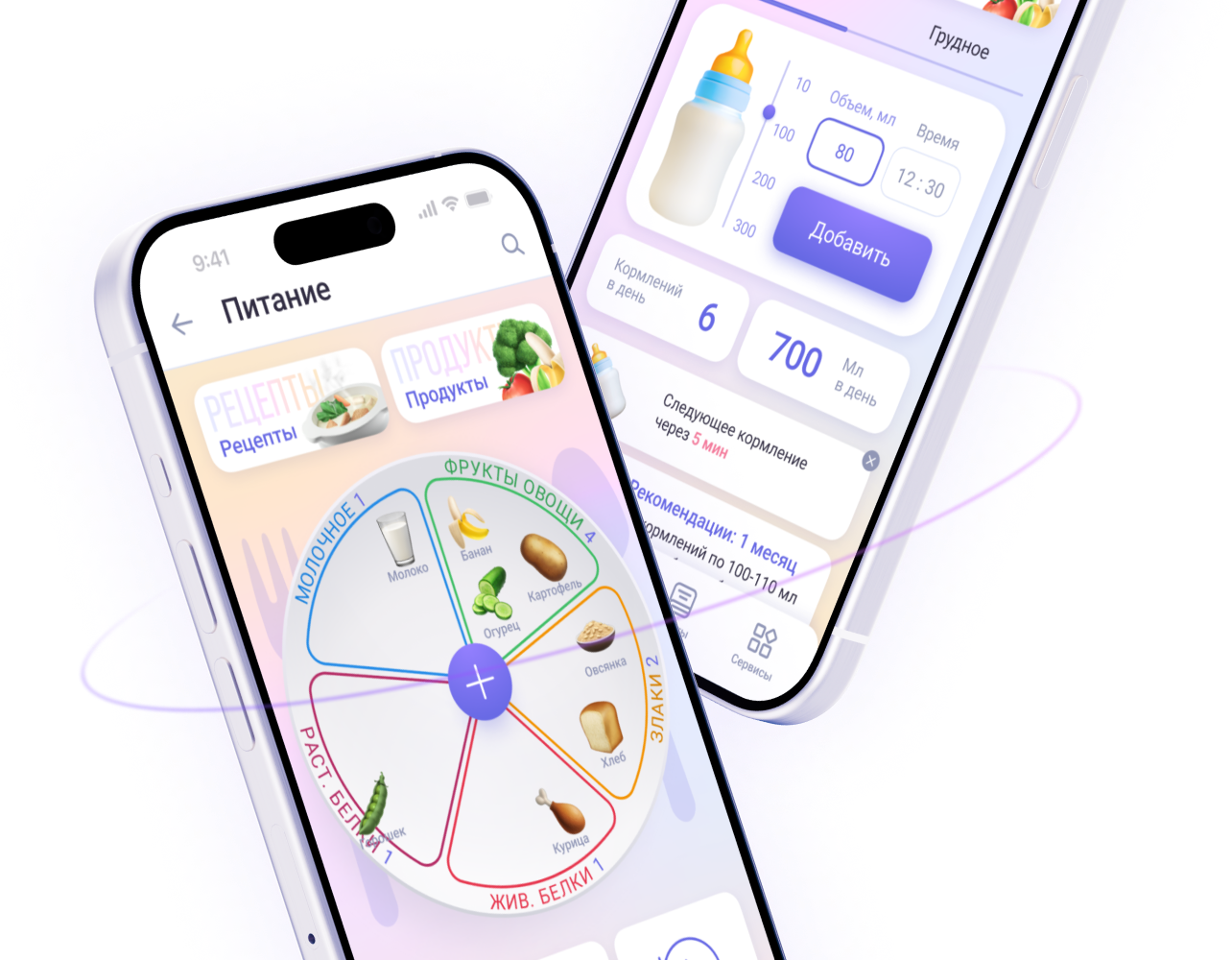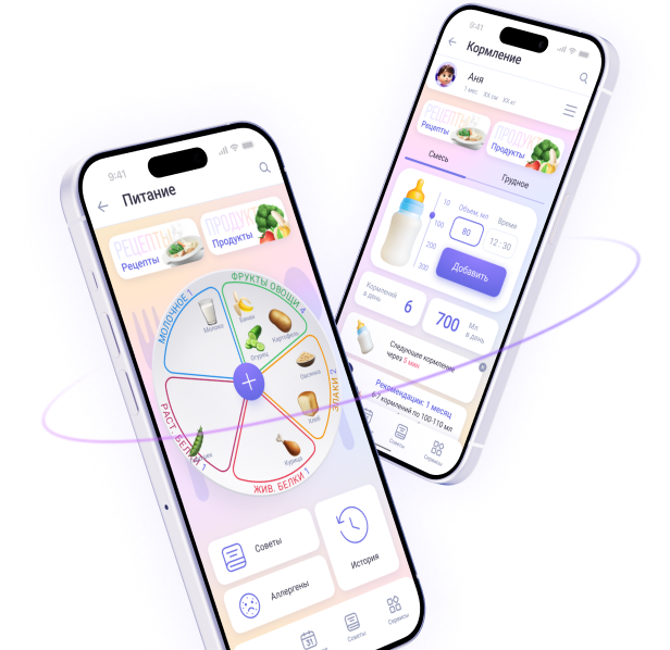 Приложение поможет с контролем грудного и искусственного вскармливания, введет прикорм и составит рацион на неделю.