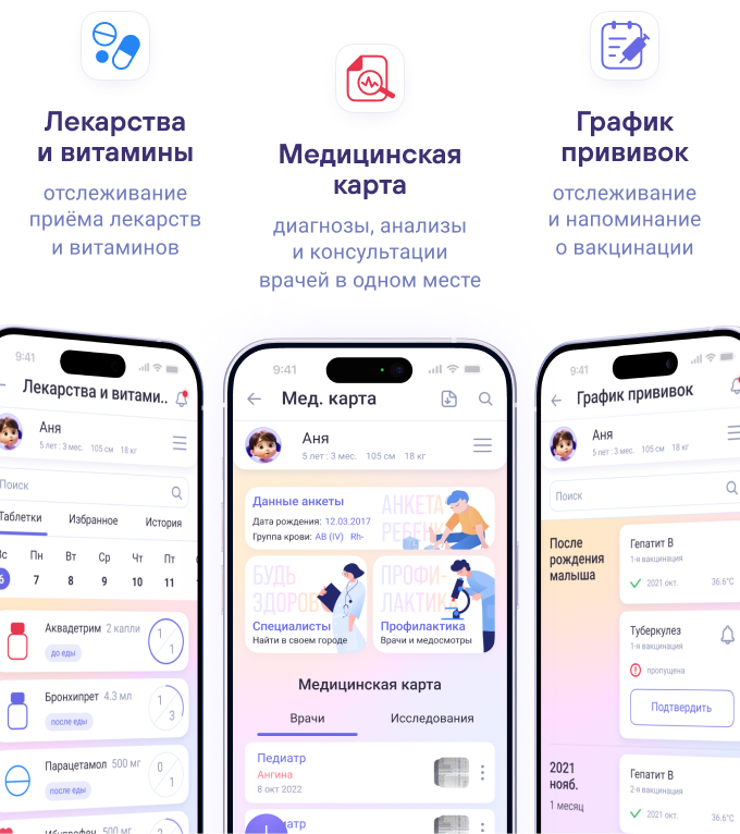 Отличное приложение, слежу за здоровьем сына и дочери. Всё в одном месте, очень понятно и наглядно.